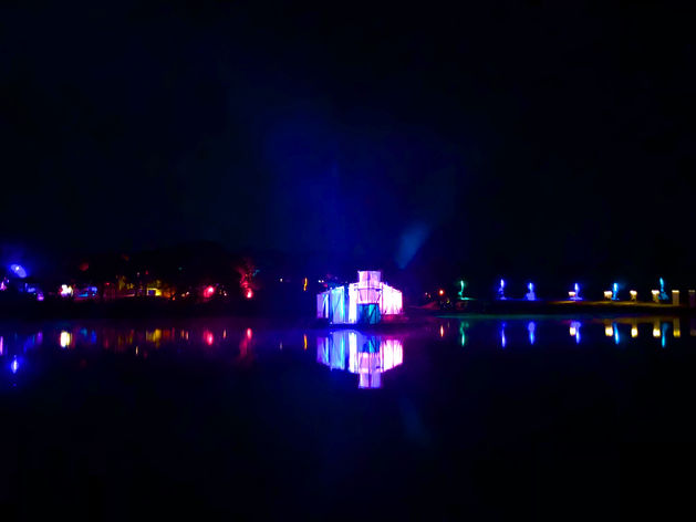 People were incentivised to work together to operate the pulley system repeatedly assembling and disassembling the house to cross the lake. At night, the structure was locked together and internally lit. We designed the slatted woodwork and translucent fabric to create a permeable calm space during the day and a lantern effect at night.